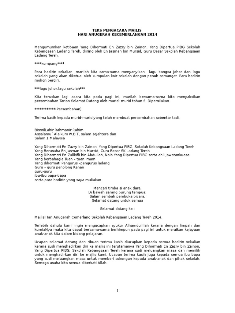 Teks Pengacara Majlis Hari Anugerah Kecemerlangan Pdf